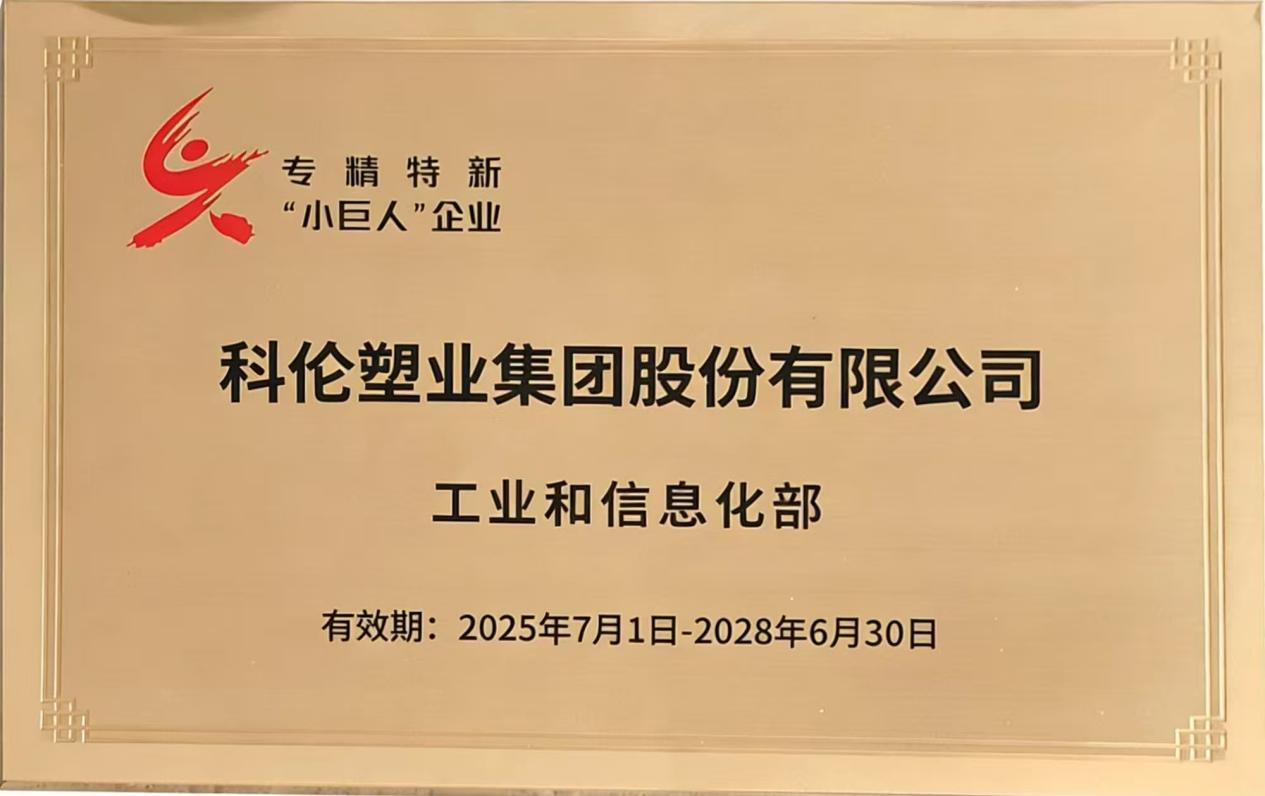 恭賀科倫塑業(yè)再次榮獲專精特新“小巨人”企業(yè)